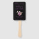 Um lindo fã de mão do programa de casamento roxo, este item é colocado sobre um fundo preto, a fonte é roxa com uma flor de aquarela roxa. Use as modelos fáceis para preencher suas informações.