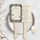 The front of the fan displays your wedding day itinerary, clearly outlining each moment—from the ceremony to cocktail hour, dinner, cake cutting, and evening celebration—using charming hand drawn, illustrated icons that add a subtle vintage touch without feeling playful or overly casual. The reverse side showcases the wedding party details, including parents of the couple, bridesmaids, groomsmen, officiant, and a heartfelt thank-you message, creating a keepsake your guests will appreciate long after the celebration.