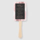 This elegant, modern wedding program fan features a blush pink agate background trimmed with rose gold faux glitter. The text appears in elegant rose pink handwriting and copperplate fonts on an off-black rectangle.