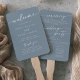 Este fã de mão do programa de casamento azul empoeirado é perfeito para uma cerimônia de casamento minimalista. A cinza da boêmia moderna, design azul-clara e neutra, apresenta uma caligrafia rústica simples com um estilo único, mas clássico. Personalize seu programa de casamento com seus nomes, data do casamento, local, obrigado de sua mensagem, ordem de serviço e festa de casamento.