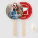 Sua foto favorita, as palavras Nosso Formando, seu nome na frente e boné de formatura e mais informações sobre o fundo vermelho escarlate nas costas. Esses fãs de mão são uma maneira divertida de se manter legal no dia da formatura. Correspondendo itens em nossa loja.