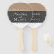Cinzas elegantes e modernas e fãs de casamento bege. O design está em elegantes cinzas escuras, cores brancas e beges e roteiro moderno. Bem-vindos e obrigado os convidados do casamento. Excelente como guardiã de casamento para você e seus convidados. Personalize todo o texto do ventilador.