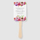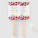 Lindas e brilhantes flores cor-de-água cor-de-rosa decoram esta fã de casamento romântica e moderna para uma tarde de verão ou uma cerimônia de primavera num jardim. A elegante escrita cursiva é enquadrada por uma foquísia vibrante e buquê floral roxo de rosas clássicos em ambos os lados, no topo e no fundo.