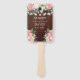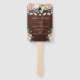 Mantenha seus convidados legal e na moda com este fã de mão do programa de casamento rústico, com flores romáticas, cor-de-rosa, e luzes de cordas contra um fundo de madeira. Perfeito para casamentos ao ar livre e no celeiro, este fã combina elegância com um toque de charme country. Personalize com seus detalhes de cerimônia para uma manutenção memorável que complementa seu tema de casamento rústico ou de jardim. Ideal para casamentos de verão, este fã de mão adiciona função e beleza ao seu dia especial.