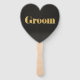 Um ventilador manual com texto em negrito e dourado em 3D. Personalize-o para o seu dia especial.