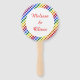 Este incrível fã de mão do casamento mostra uma imagem design gráfica colorida do arco-íris de uma abelha. A abelha tem um corpo amarelo com olhos negros, pernas e antenas e 5 listras no ventre, uma em vermelho, laranja, verde, azul e roxo. Há um texto colorido do arco-íris ao redor da abelha que diz "Bee orgulhosa Bee quem você é" Há também uma seleção de flores coloridas do arco-íris no fundo. Há texto personalizado no verso para incluir o nome do casal feliz.