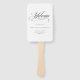 Programas de casamento de fãs elegantes e formais em preto e branco com "bem-vindo" em letras elaboradas de caligrafia. Personalize com os detalhes da sua cerimônia e um obrigado que você envia no verso.