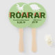 Adoravelmente bonitos fãs de chás de fraldas de dinossauros com textos personalizados.
