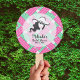 E ela vai para o altar! Um fã de mão com um chapéu de uma senhora com a sua mensagem contra um fundo de blocos diagonais de listras cor-de-rosa-quente, verdes e brancas. Uma maneira divertida de se manter legal e obrigado convidados por vir ao seu chá de panela temático Derby ou mudar o texto e uso para uma festa de aniversário ou qualquer ocasião. CORRESPONDENDO a itens na nossa loja.