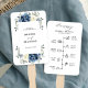 Ventilador de mão azul-poeirento itinerário do casamento floral, com buquê de mão elegante de azul marinho, azul real, branco, marfim de champanhe, rosa de cor esbranquiçada, botões de flores ranúculus e folhas de eucalipto verde-sábio e buquê de cor d'água elegante. Entre em contato comigo para obter ajuda sobre a personalização ou se você precisar de outro produto com este design.