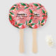 Ventiladores de mão redonda apresentam suas informações em letras quicas em uma colagem de rosas vermelhas e folhas, perfeito para a festa Derby, chás de panela temáticos Derby ou qualquer ocasião. CORRESPONDENTE a itens na nossa coleção.