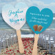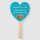 Fã de casamento em forma de coração com conchas design. Cor azul-aqua, este ventilador portátil tem um fundo oceânico na frente com nomes do casal em letra de script de giro. Por outro lado, inclua a data do evento junto com um ditado do casamento. O texto da amostra é: "Para ter e manter a partir deste dia". Esta design e o texto funcionarão em outras formas, mas não na retangular. Manter todo o texto afastado das bordas. O design impressão como você vê!