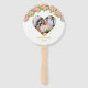 Coração romântico elegante e flores cor-de-água rosa no ventilador branco da mão. Texto e imagem prontos para serem personalizados.