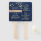 Mantenha seus convidados legal e informados com este marinho azul rústico fã de casamento de madeira rústica com luzes brilhantes de cordas e delicados sotaques florais de ouro. Um layout na moda de dois lados inclui a linha cronológica da cerimônia e a lista de festas de casamento, juntamente com uma mensagem personalizada obrigado-você do casal. Perfeito para casamentos ao ar livre ou quente com charme rústico elegante.