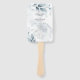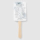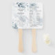 LEQUE DE PROGRAMA DE CASAMENTO | Folhas elegantes em azul poeirento decoram cada lado destes leques de programa de casamento modernos. Cada convidado pode se abanar e ler todo o programa do seu casamento e dos membros da festa de casamento.
