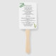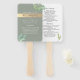 Elegante leque de mão de programa de casamento verde sálvia com folhas de eucalipto em aquarela e detalhes em dourado moderno. Um lado exibe uma mensagem de boas-vindas, o outro descreve os detalhes da cerimônia e do casamento. Ideal para casamentos ao ar livre ou celebrações em clima quente.