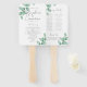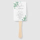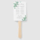 Simples, moderno, minimalista com fonte de assinatura de letra trendy programa de casamento impresso em um leque com uma borda de verde Eucalipto aquarela, ordem da cerimônia, nomes da festa de casamento, e mensagem de agradecimento no verso. A cor de fundo branca pode ser alterada para combinar com o esquema de cores do seu casamento.