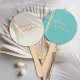 Mantenha seus hóspedes legal e na moda com nossos ventiladores retro-chic. Projetados para combinar com o tema do seu casamento, esses ventiladores apresentam um fundo amarelo claro com três faixas vibrantes em cor, amarelo e laranja. As iniciais do casal são exibidas em laranja preto, separadas por um símbolo exclusivo amarelo "+". Perfeito para um casamento ao ar livre ou como uma lembrança memorável, esses fãs de mão combinam praticidade com um talento moderno, mas nostálgico, garantindo um toque coeso e colorido para o seu dia especial.