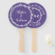 Aprecie seus convidados de casamento com esses divertidos fãs brancos na moda Ultra Violet e brancos - perfeito para um primavera, verão ou mesmo casamento outono, para se legal durante a cerimônia. Usando minha mão original desenhada na garland vines e folhas de design em lavanda suave e branca, a frente é fácil de personalizar com os nomes do noivo e do noivo enquanto a parte de trás repete o motivo da coroa com AMOR no centro, EAT DRINK & BE CASADO no topo e a data do seu casamento no fundo. Esses fãs flertados serão um sucesso no casamento, na recepção e como recordação divertida e tesoura nos próximos anos.