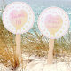 Este design de fã de mão é uma ideia doce, uma ocasião especial como uma festa de aniversário Doce 16 com informação modelo nos dois lados do ventilador. Preencha os campos de modelo de informações pessoais, remova qualquer texto ou clique em personalizar para selecionar uma cor, um tamanho e um estilo de fonte preferidos.