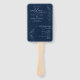 This wedding program hand fan features a deep navy blue& with color theme. Delicate eucalyptus springs in fine line art add a soft botanical accent. The design is elegant, modern, and easy to read. This hand fan program is ideal for outdoor or summer weddings and pairs perfectly with a navy blue and greenery wedding theme.