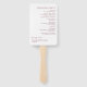 This elegant wedding program hand fan features delicate floral line art in a rich burgundy and white color palette. The clean layout and clear typography make the ceremony details easy to read while adding a refined decorative touch. The floral artwork brings a soft, romantic feel that suits classic, modern, and boho wedding themes. This hand fan program is ideal for outdoor or warm-weather ceremonies and pairs well with a coordinated burgundy wedding stationery suite.