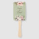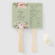 Elegant wedding program fan featuring soft blush and ivory peonies with greenery on a muted sage green background. Perfect for outdoor or summer ceremonies, keeping guests cool while showcasing your wedding details in style.