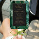 Este elegante e moderno fã do programa de núpcias mostra um esmeraldo verde-agado, coberto com brilho dourado. O texto aparece em letras elegantes douradas coloridas e fontes copperplate em um retângulo preto ardado.