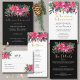 Faça seus sonhos de casamento no inverno de Natal se realizarem com este moderno e elegante pacote de convites para buquês de poinsettia. O buquê de poinsettia, cor-de-água, rosa magenta e vermelho, é acentuado com verde, pinheiro, pinças, cones de pínus, groselhas ocas vermelhas e acentos de ouro. Este convite é perfeito para um casamento no inverno elegante e moderno. Dourado Script "Esta É A Época A Ser Casada".