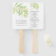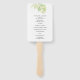 Folhas de eucalipto botânico e flores. Bonito folhagem de molho verde-aquarela em um programa de casamento branco. Parte do conjunto de papelaria de casamento da arte de eucalipto. Edite este fã do programa de casamento com seu próprio nome, datas e texto da cerimônia. Elegante programa de cerimônia de casamento simplesmente substitua o texto da amostra por seus próprios detalhes de casamento. Pintura e design por Sarah Trett para www.mylittleedenweddings.com