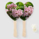 Flores bonito da Montanha Rosa Laurel com aglomerados em forma de estrela e pedaços de pétalas cor-de-rosa mais escuras com folhas verdes no fundo. O amor é escrito em branco na frente. Você pode clicar em Personalizar para personalizar ainda mais a parte frontal e traseira dos ventiladores de remo cardíaco. Mostrado em um ventilador de remo em forma de coração. Adorável para um casamento de jardim para os seus hóspedes legal no primavera ou no calor do verão. Fotografia original por TamiraZDescartazes em www.zazzle.com/tamirazdesigns