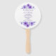 Ventiladores de casamento de uma flor de anêmona roxa. Personalize com seus próprios detalhes da cerimônia no contrário. Ideal para um casamento de verão. Pintura original e design por Sarah Trett para www.mylittleeden.com