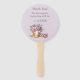Celebre com elegância e capricho com este charmoso leque de mão personalizado para Chá de Noiva, projetado para agradecer aos seus convidados por se juntarem ao dia especial da noiva. O leque apresenta um design encantador com flores cor-de-rosa e lilás femininas, complementado por um clássico bule de chá, um suporte de bolo adornado com deliciosos bolos de chá e uma delicada xícara e pires, decorados com padrões florais intrincados, completando a cena, ideal para uma celebração de Chá das Cinco. Tudo isso é colocado contra um fundo lilás poeirento, adicionando um toque de sofisticação. Perfeito para expressar gratidão, este elegante leque de mão capturará a essência do seu requintado Chá de Noiva.