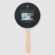 Este fã preto de festa de formatura de medicina negra apresenta um design de hexágono geométrico dourado com um caduceus médico elegante acima de uma fotografia do formando. Modernos fãs de celebração de fotos a olhos para um novo médico ou enfermeiro em 2025.