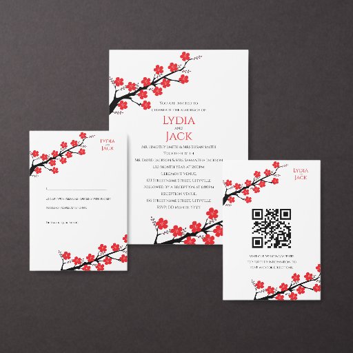 Red Cherry Blossom Themed Wedding Invitation SuiteCriado por Kerry Lowe