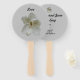Esta foto de uma magolia branca cremosa do sul aparece neste fã de mão segurando para manter seus convidados legal. Você pode personalizar facilmente qualquer texto, bem como a cor do plano de fundo, para se adequar ao seu tema. Essa magnólia é elegante e eterno e aparece em outros produtos totalmente personalizáveis.