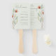 Flores vermelhos aquarelas com folhas verdes sábias em um fundo verde-claro e personalizado, texto personalizável de ventilador manual. Texto de boas-vindas personalizado e programa de cerimônia.