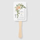 Flores de coral de pêssego aquarela, programa de leque de mão de casamento de primavera de arco e monograma. Este lindo design de casamento apresenta uma moldura de arco com flores de cacto de coral de pêssego e folhas no canto esquerdo e seu monograma. Os nomes estão em tipografia cursiva.