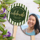 Mantenha-se legal ao apoiar seu formando favorito enquanto recebe seu diploma, com este fã de manutenção. A frente ostenta uma caligrafia manuscrita, moderna, cintilante de ouro esparsa, em um fundo verde-caçador e listrado branco com pontos falsos de brilho dourado. Personalize o texto personalizado com o nome, o segundo grau e o ano de classe do seu formando. Sua foto personalizada está no fundo. Convites de encontro, cartas de agradecimento, bonés, guardanapos, pratos e outras vestimentas de graduação também estão disponíveis nesta coleção de tendências e na moda. Garantido para preservar memórias queridas de sua ocasião especial! Basta substituir a foto de exemplo por uma de suas, digitar suas informações pessoais, e você pode personalizar facilmente esse fã de mão de graduação de manutenção. Por favor, me mande mensagens com quaisquer perguntas ou solicitações.