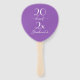 Mantenha-se fresco durante a formatura com leques modernos personalizáveis que apresentam palavras elegantes em letra cursiva branca em um fundo roxo violeta. Personalize o ano para um design de tipografia cursiva sofisticado que lê: formando da turma de [ANO]. A parte traseira apresenta um padrão decorativo pintado de curvas brancas que se encontram e divergem em um fundo roxo.