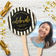 Mantenha-se legal ao apoiar seu formando favorito enquanto recebe seu diploma, com este fã de manutenção. A frente ostenta uma caligrafia manuscrita, moderna, cintilante de ouro esparsa, em um fundo listrado preto e branco com pontos falsos de brilho dourado. Personalize o texto personalizado com o nome, o segundo grau e o ano de classe do seu formando. Sua foto personalizada está no fundo. Convites de encontro, cartas de agradecimento, bonés, guardanapos, pratos e outras vestimentas de graduação também estão disponíveis nesta coleção de tendências e na moda. Garantido para preservar memórias queridas de sua ocasião especial! Basta substituir a foto de exemplo por uma de suas, digitar suas informações pessoais, e você pode personalizar facilmente esse fã de mão de graduação de manutenção. Por favor, me mande mensagens com quaisquer perguntas ou solicitações.