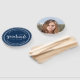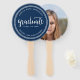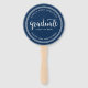 Ventiladores na moda redondos com borda branca de listras e a palavra "Formando" no script de pincel de tendência contra um fundo azul na frente. No verso você pode adicionar a foto do formando. Personalize-o substituindo o texto do marcador de posição e substitua a foto do marcador de amostra/marcador de posição por sua própria foto. Para obter mais opções, como alterar a fonte e seu tamanho/cor ou o espaçamento entre letras, clique no botão "Personalizar". *Observe que a Marca d'água Zazzle que aparece na visualização de zoom NÃO aparecerá no produto impresso final © Rosewood e Citrus