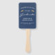 Ajude seus convidados de graduação a se manterem legal durante a cerimônia ou festa com esses fãs de mão personalizados de graduação em fotos, com as palavras "Parabéns para nosso Formando" em texto branco sobre fundo azul escuro. A palavra "Formando" aparece em um script gracioso no estilo de escrita manual. Um par de bonés de conselho de argamassas de brilho dourado e uma dispersão de ouro confete decoram a parte superior da etiqueta. Personalize um lado com seu nome de formando, escola e ano de graduação. Substitua facilmente a imagem do exemplo do outro lado por uma foto do seu formando.