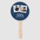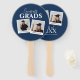 Ventilador de mão dupla moderno, que apresenta duas fotos do formando. O fã tem um texto de modelo que diz 'FORMANDOS FELICITANTES, SEUS NOMES, ANO DE GRADUAÇÃO, E SEU NOME DE ESCOLA OU FACULDADE'. Todos os estilos de fonte e cores de fundo podem ser alterados clicando no link personalizar depois de personalizar. *Por favor, me mande uma mensagem se precisar de ajuda.