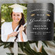 Ajude seus convidados de graduação a se manterem legal durante a cerimônia ou festa com esses fãs de mão personalizados de graduação em fotos, com as palavras "Parabéns para nosso Formando" em texto branco em uma cinza de carvão vegetal, faux bruche metal fundo. A palavra "Formando" aparece em um script gracioso no estilo de escrita manual. Um par de bonés de conselho de argamassas de brilho dourado e uma dispersão de ouro confete decoram a parte superior da etiqueta. Personalize um lado com seu nome de formando, escola e ano de graduação. Substitua facilmente a imagem do exemplo do outro lado por uma foto do seu formando.