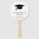 Ventilador de mão de graduação de cara minimalista com boné de formatura e "Parabéns Formando" em letras grandes juntamente com o nome do formando e o ano de classe em preto sobre um fundo branco. O fundo tem sua foto favorita. Esses modernos e simples fãs de mão são perfeitos para um formando e são uma forma excelente de adicionar um toque pessoal à sua festa de formatura.