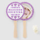 Traga esses fãs de mão roxos e brancos divertidos para a cerimônia de graduação para que você possa mostrar seus parabéns ao formando enquanto eles orgulhosamente recebem o diploma. Cada ventilador de mão de graduação apresenta um lado com uma borda brilhante roxa falsa, um trio de designs de boné e de fita correspondentes de cima e de baixo com CONGRATS e VOCÊ FEZ! e seu nome de formando no meio em uma fonte roxa maior sobre o fundo branco. Esses ventiladores de mão redonda personalizados revertem para uma borda de brilho roxa e falso correspondente e sua foto de formando no centro. Adicione um pouco de diversão à comemoração da graduação com esses divertidos fãs de mão, roxos e brancos personalizados.