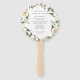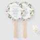 A nossa coleção de casamentos florais de coloração d'água de Ivory Bloom apresenta um tecido de cor d'água delicadamente pintado, folhagem botânica verde e flores brancas e marfim. Personalize a frente e o verso desses fãs do programa de casamento com seus detalhes e festa de casamento de cerimônia.