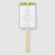 Mantenha seus hóspedes legal e na moda com este Fã de Mão do Programa de Casamento La Dolce Vita Mediterrânica - uma mistura perfeita de beleza e função para sua celebração do tempo quente. Apresentando elegantes ilustrações de citros de limão, florais azuis e amarelos, e padrões clássicos de azulejo mediterrânico, esse fã dobra como um programa de casamento chico e um favor refrescante. Ideal para casamentos costeiros Amalfi, cerimônias de outono Tuscanas, ou qualquer comemoração ao estilo vintage italiano, isso adiciona um toque atencioso e elegante ao seu casamento ao ar livre ou destino.