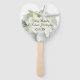 Fã de casamento em forma de coração, Starfish e hydrangea branca. Um lado do ventilador segura esse ditado, "Ter e segurar a partir deste dia", e o outro tem modelos de nomes e datas. O Livro tem um fundo branco com estrela branca do mar e flores faz parte da coleção Jardim das Botas Costeiras.